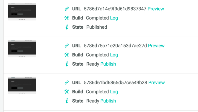 So we said “No more!” Netlify versions each asset according to its SHA1 and then burn that into the markup directly. This means that when asked “What image did they see?” we always know. We do the same with the markup, versioning its content by fingerprinting. By grouping the markup associated with a particular version of the site, we have created a snapshot of the whole site state; we call them deploys. They are very lightweight and let us keep a complete history of the site throughout time.