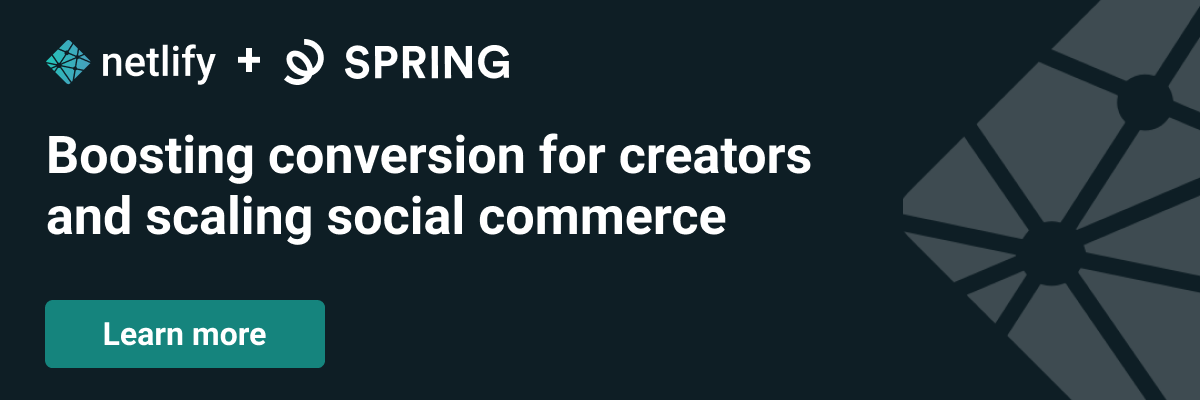 Spring (formerly Teespring) is a massive e-commerce platform with more than 1 million unique visitors each day. They migrated from a monolithic Rails app to a microservices-based web architecture, and achieved vastly better developer experience, site performance and conversion rates. They also cut build times from 90 minutes to 1 minute using Netlify High-Performance Build.