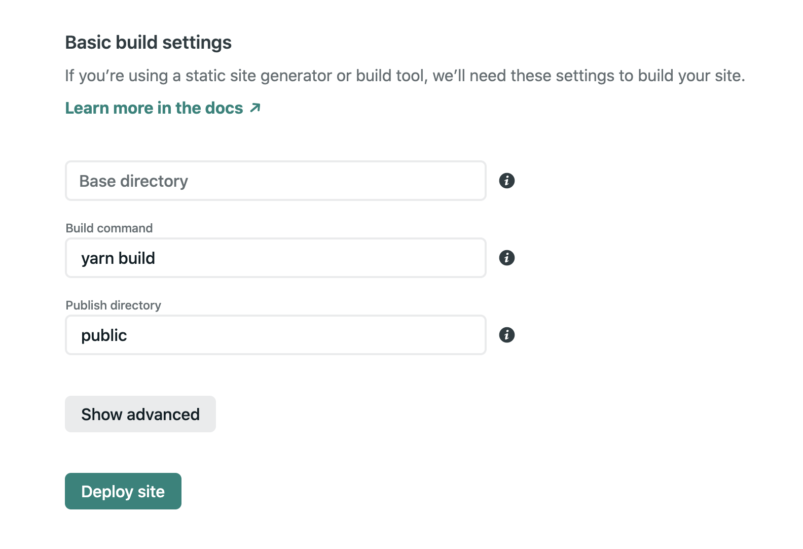 At this point, our documentation project became a design project! Our product manager helped prioritize the effort, and our product designer jumped in to solve the problem. We came up with a way to accommodate setups for both monorepos and standard sites from the same workflow without adding complexity in the app. Now, Netlify users find an additional base directory field in their setup, and it’s clearly an option to skip this if you don’t need it.