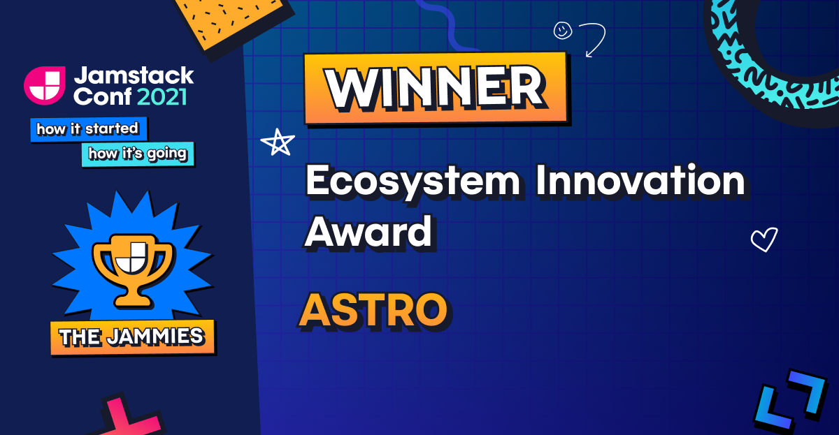 This year’s ecosystem innovation award goes to Astro, an innovative Jamstack platform that lets you build faster websites with less client-side JavaScript. They make it possible for developers to build fully functional sites with any framework of their choice or none at all. Astro offers the best of both worlds when it comes to lightweight static sites generators like 11ty and bundle-heavy alternatives like Next and Svelte Kit.