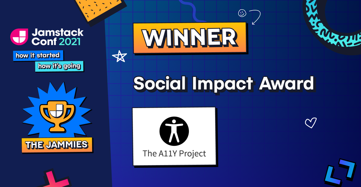 This year, the Social Impact Jammie goes to the a11y project. The a11y Project is a community-driven effort to make digital accessibility easier. Their open sourced Eleventy site provides a wealth of resources, from books to podcasts to a step-by-step checklist, to make the web more accessible.