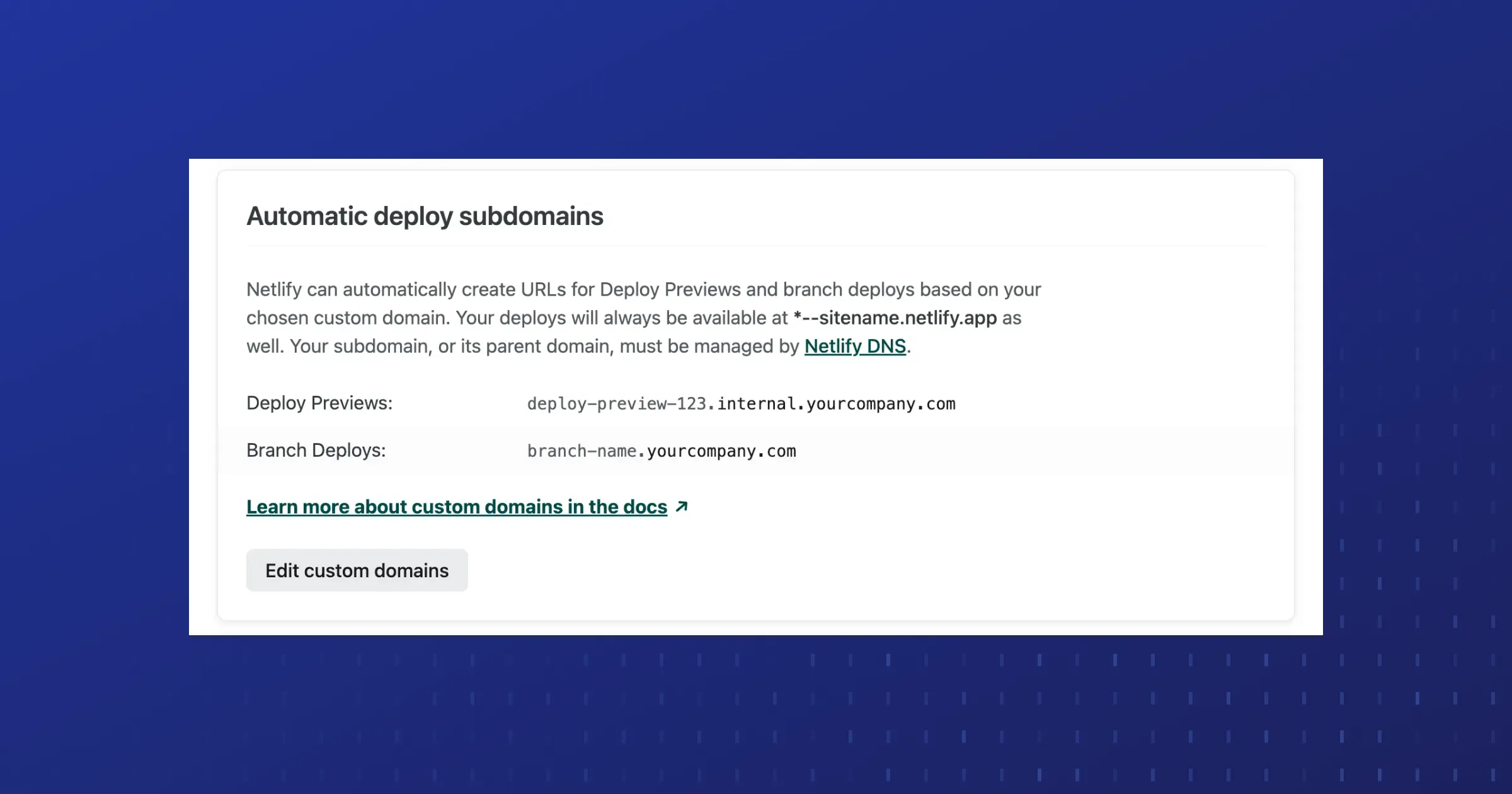 This allows projects on Netlify to create an unlimited number of environments instantly and without the additional costs and maintenance overheads you’d get from doing this manually.