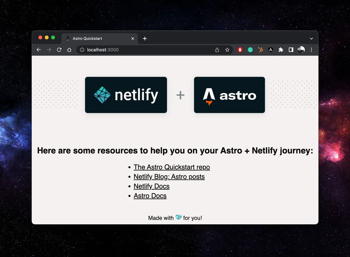 - you can check it out live here: https://astro-quickstart.netlify.app/