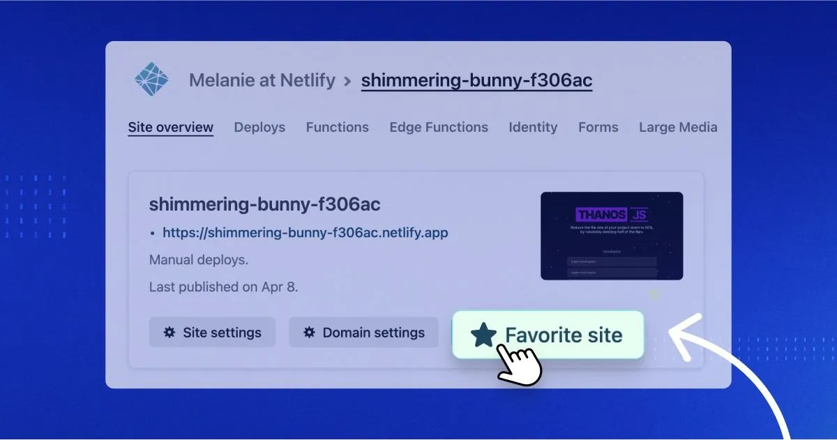 Keep your most important Netlify sites within reach with new stars in the Netlify UI.