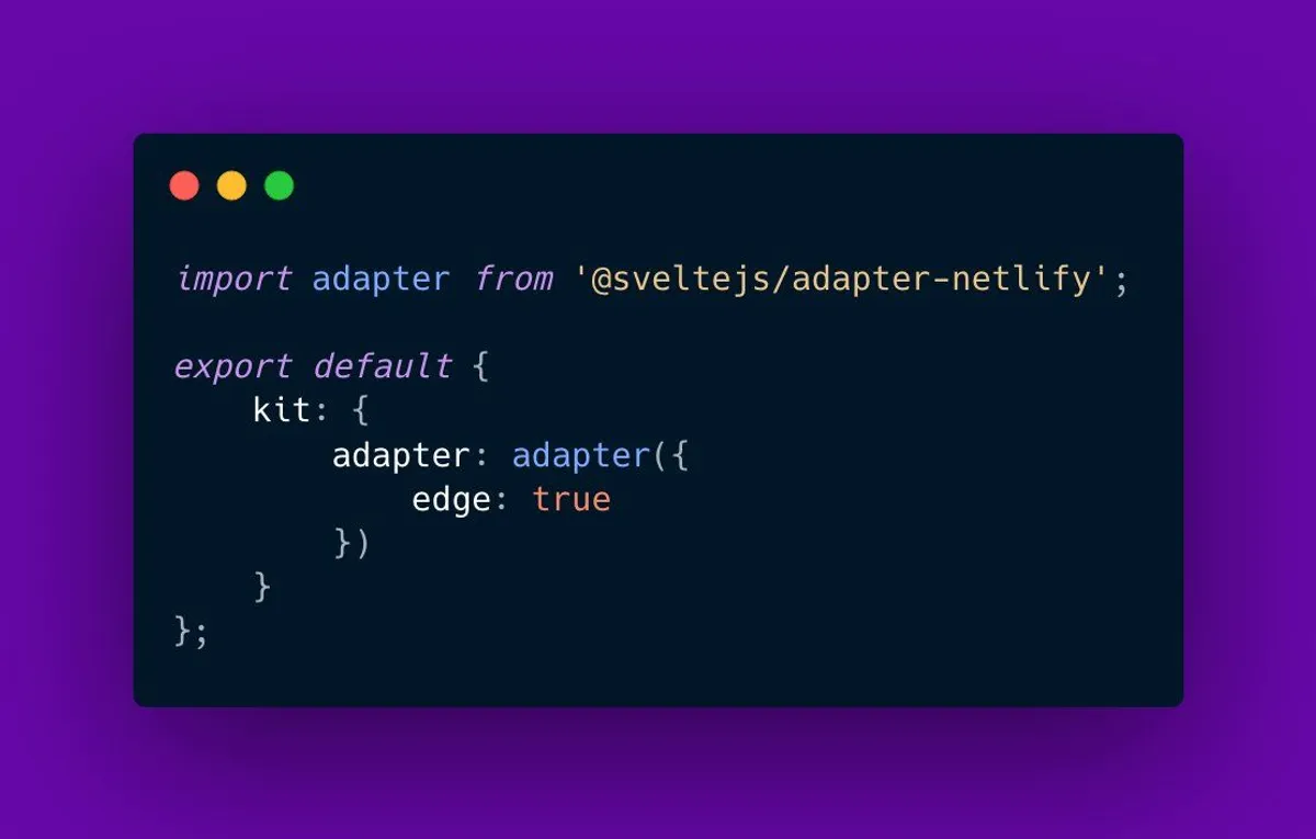 If you’re already building a SvelteKit project with Netlify, enabling Edge Functions is as simple as making a small change to the adapter configuration, setting edge: true.