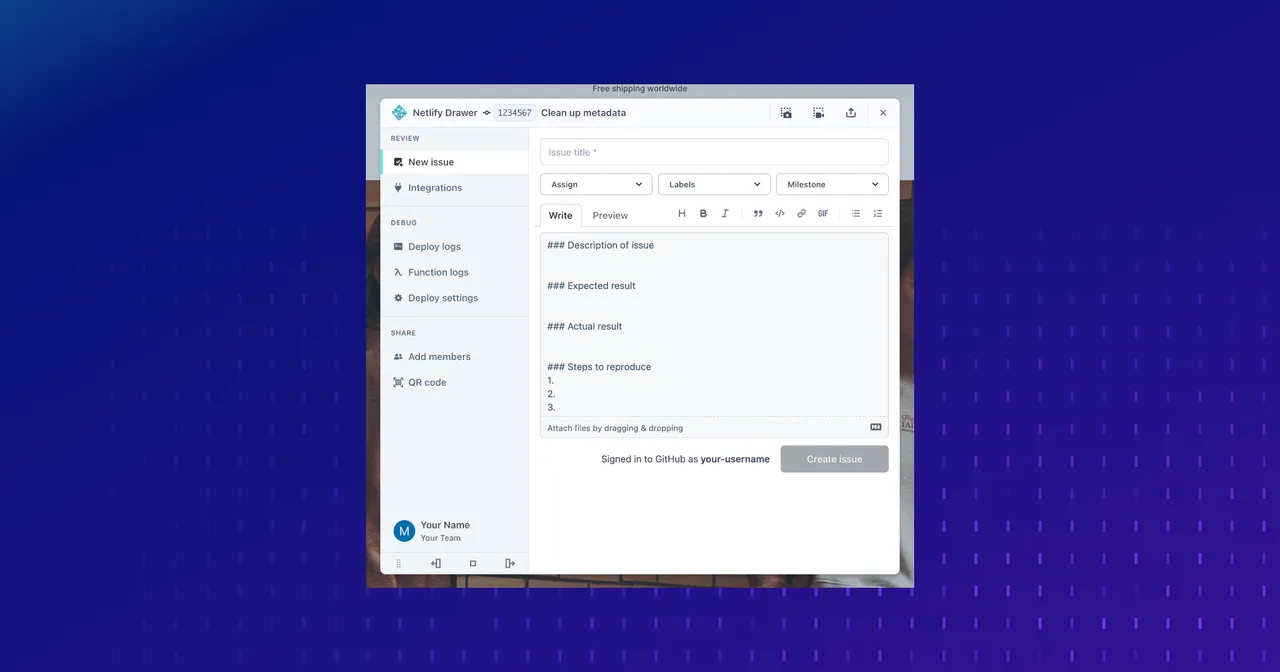 Point quality assurance teams and stakeholders to long-lived branches and subdomains so they can review before you push changes live. Use the on-page Netlify Drawer to record videos, take screenshots, check for errors, open issues, and more.