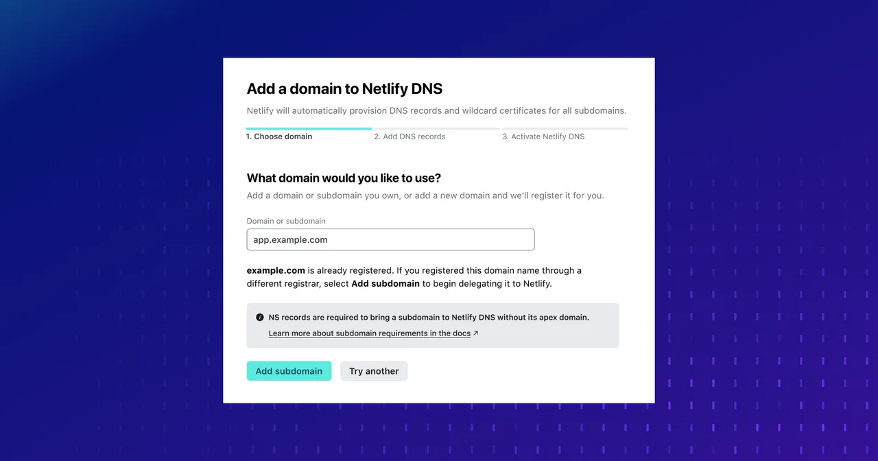 Delegate a stand-alone subdomain to Netlify DNS while keeping your apex domain on a separate registrar. Serve different content from branch domains. Benefit from security and performance improvements.