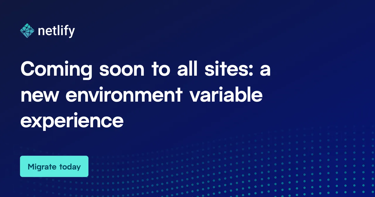 Starting in February 2023, Netlify will begin migrating environment variables to a new secret management experience with better encryption and more flexibility. Control whether environment variables are available for certain features with scopes. Set different values for specific deploy contexts.