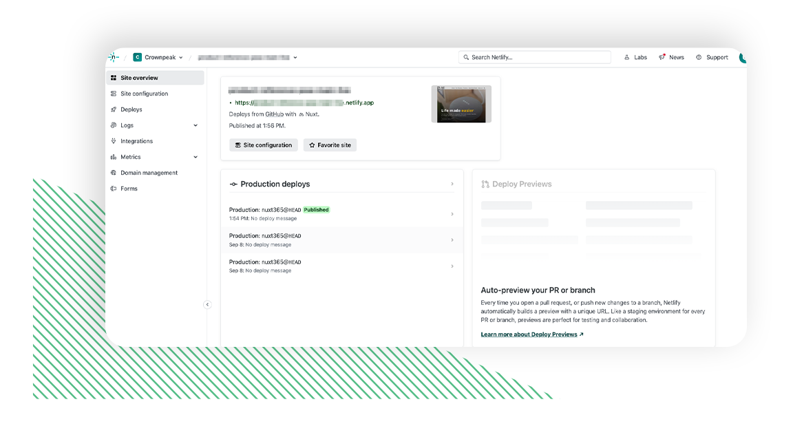 Crownpeak PWA TemplateBuild and run the Crownpeak PWA template on Netlify, powered by Nuxt
